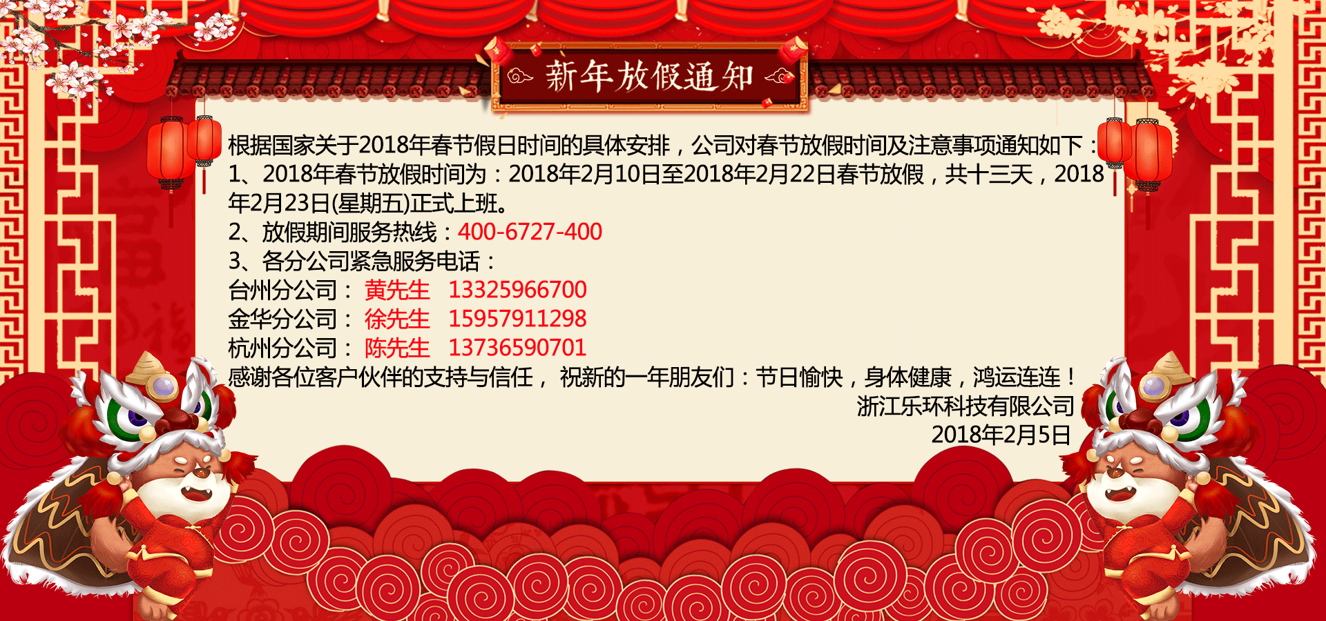 樂環放假通知