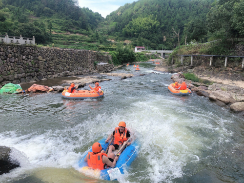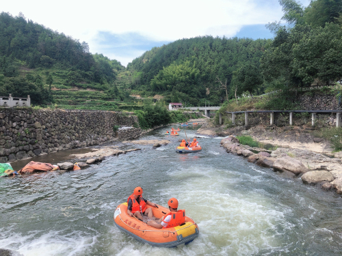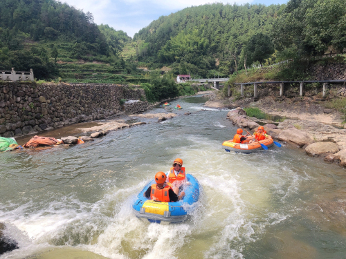 龍溪漂流河道全長3500米,是目前浙江中部海拔最高的漂流勝地。區內峽谷縱深、