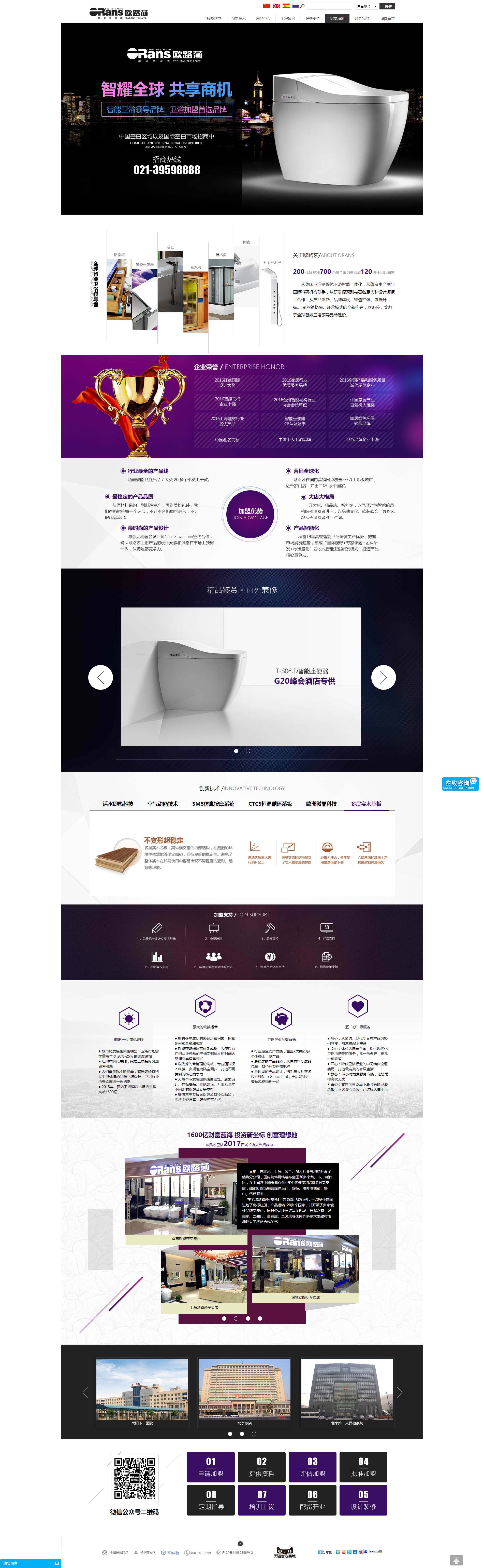 歐路莎衛浴始創于1998年,是一家專注于智能衛浴研產銷的科技型自主品牌企業,是中國最早從事整體衛浴智能化打造的品牌,先后成為按摩浴缸、桑拿房、淋浴房、智能座便器行業標準的起草制定單位,獲得“中國馳名商標”、“中國十大衛浴品牌”、“衛浴品牌企業十強”等百余項殊榮,擁有各種產品專利200余項,全國銷售網點700余家,出口全球120多個國家,并一直堅持走自主研發、品牌創新發展的道路。