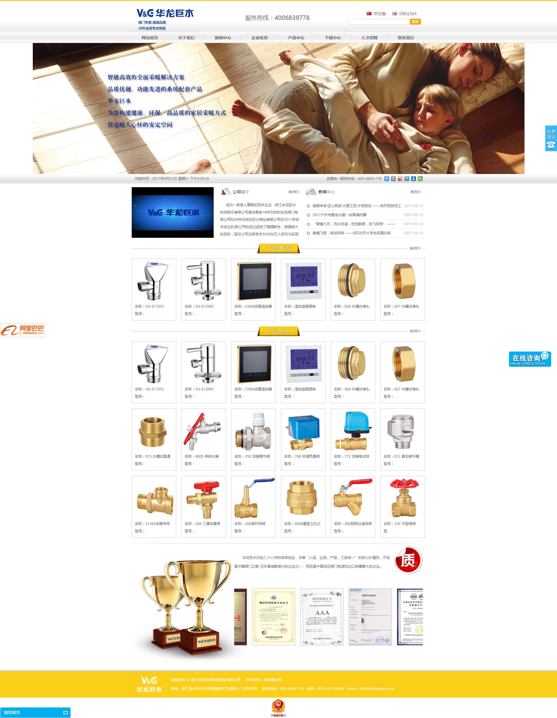 公司積極引進先進的管理技術和方法,推行日本豐田精益生產管理模式,運營管理采用ERPU9集團信息管理系統,目前擁有50多項專利、40多項認證和多項政府榮譽。旗下擁有V&G自主品牌和4大生產基地,職工總人數超1500余人,在全球市場60多個國家和地區建立了銷售服務網絡,尤其是無鉛產品暢銷美國各大建材市場。