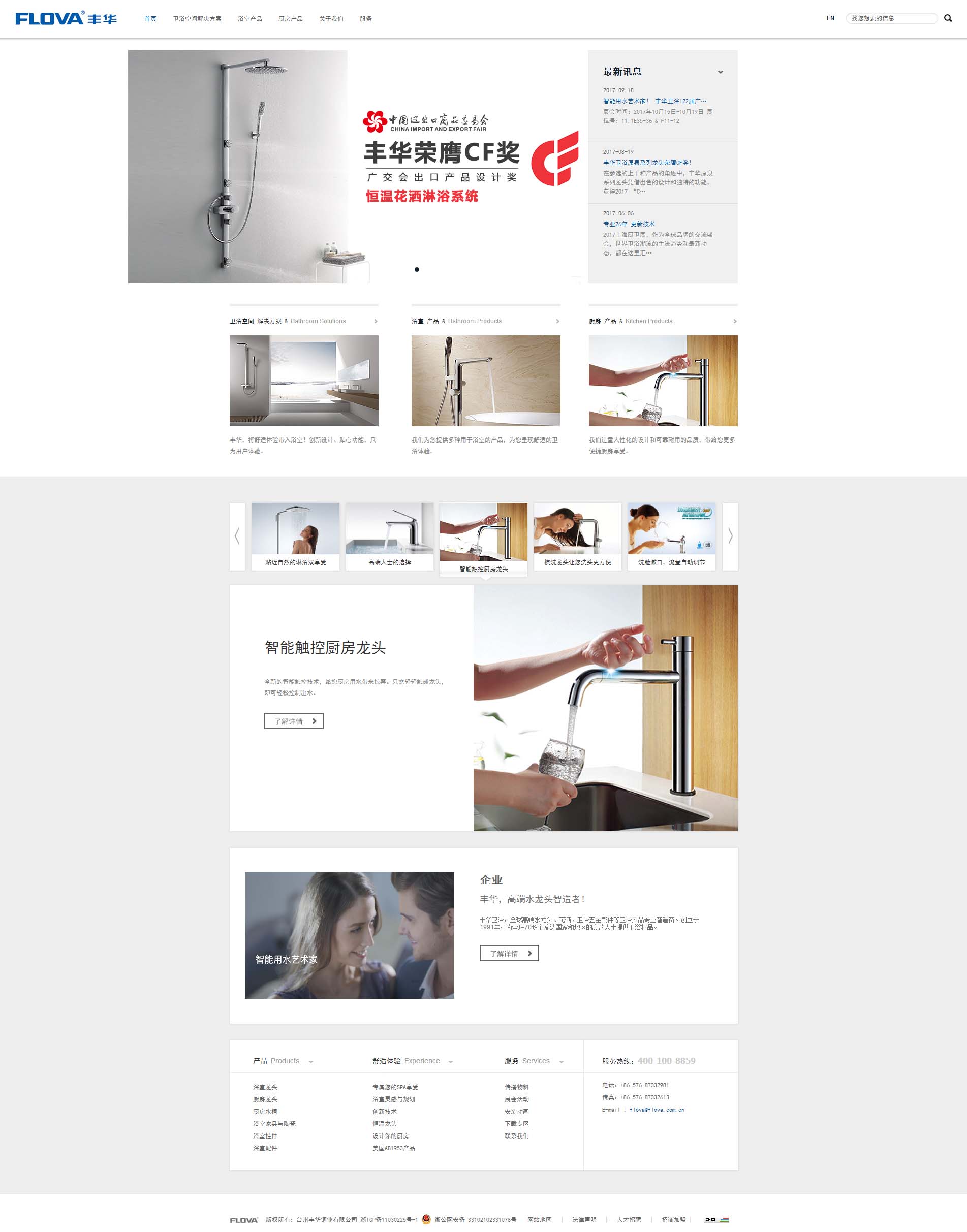 網站設計上我們以提供健康、節能、環保為設計理念,突出豐華衛浴強大的設計能力??蛻舻钠奉惍a品線涵蓋衛浴等8大品類,近百個系列一千多款產品,我們布局上就要考慮客戶的爆款和兼顧客戶網頁瀏覽方便。突出恒溫淋浴系統和智能觸控龍頭。