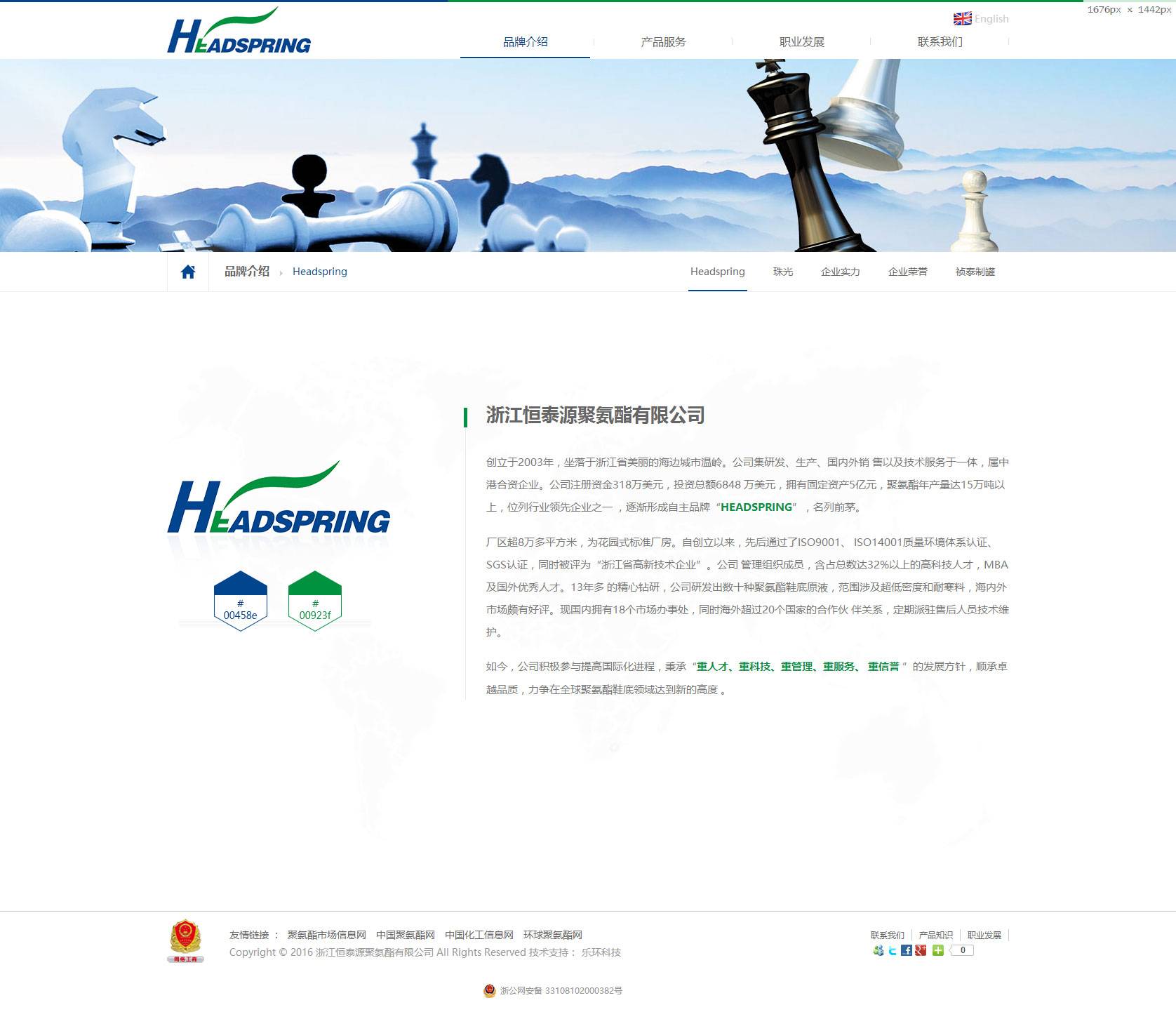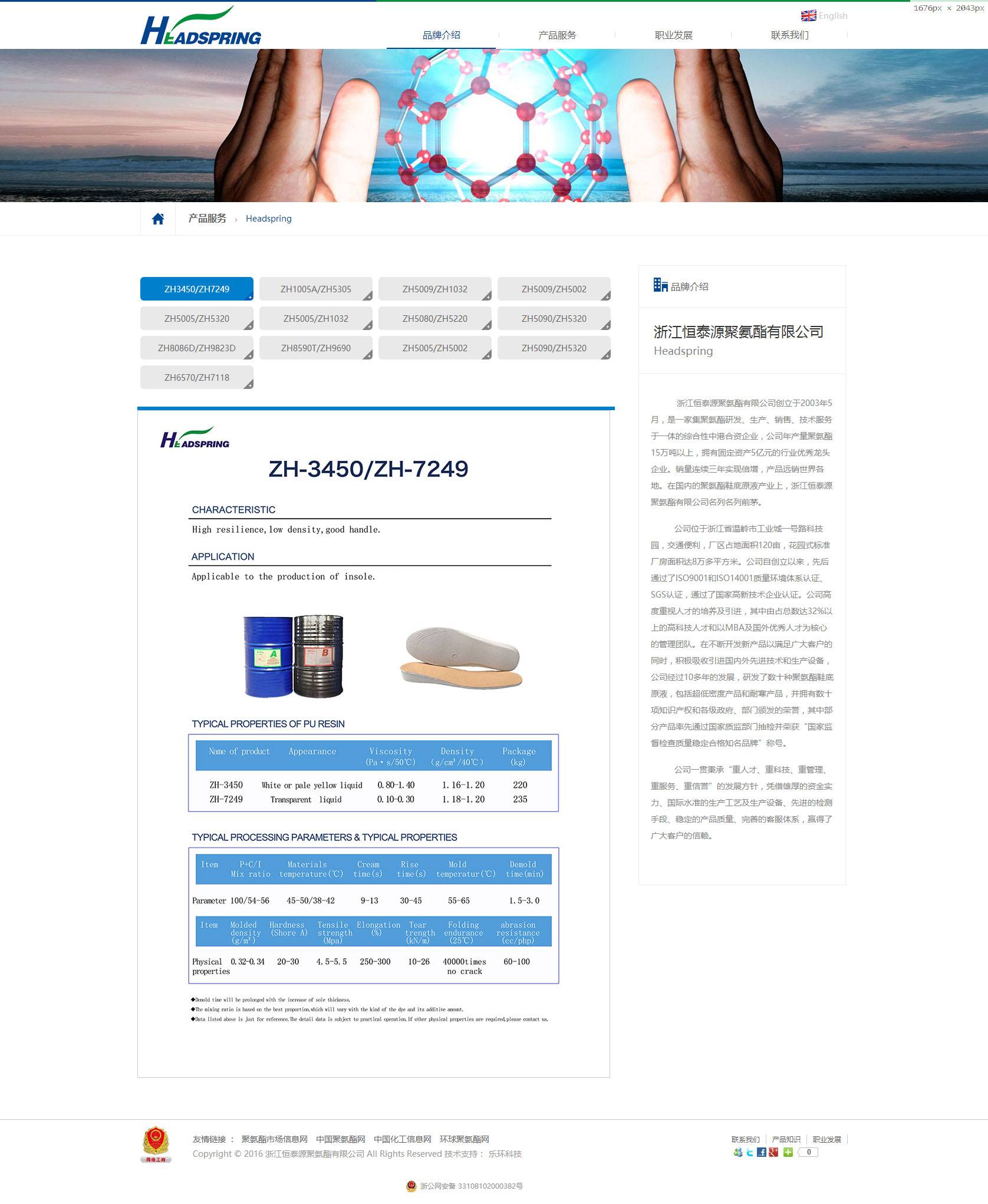 創立于2003年,坐落于浙江省美麗的海邊城市溫嶺。公司集研發、生產、國內外銷 售以及技術服務于一體,屬中港合資企業。公司注冊資金318萬美元,投資總額6848 萬美元,擁有固定資產5億元,聚氨酯年產量達15萬噸以上,位列行業領先企業之一 ,逐漸形成自主品牌“HEADSPRING”,名列前茅。