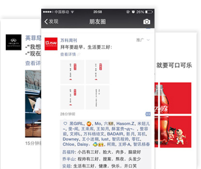朋友圈廣告將會通過微信廣告系統進行投放和管理,廣告本身內容將基于微信公眾賬號生態體系,以類似朋友的原創內容形式進行展現,在基于微信用戶畫像進行定向的同時,依托關系鏈進行互動傳播