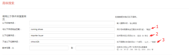 在“與以下字詞完全匹配”這個輸入框里將自己的產品關鍵詞放在引號里面。目的:讓自己的產品關鍵詞以一個整體出現在搜索結果里。