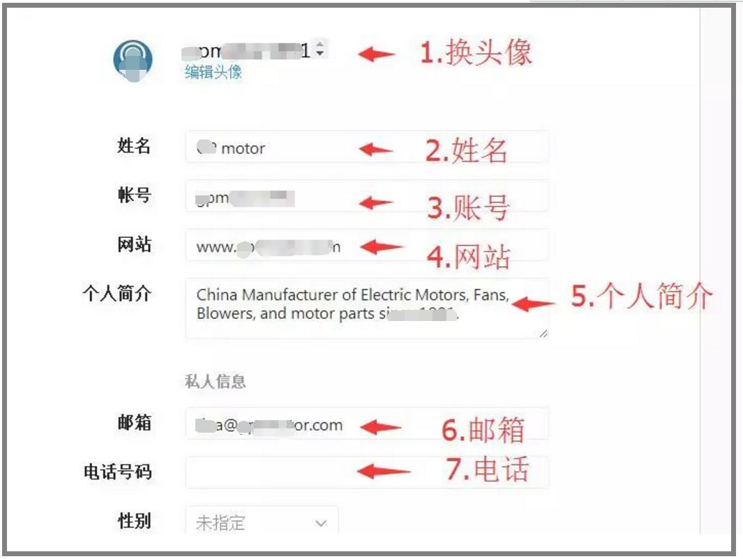 再點(diǎn)擊,全名旁邊的 "編輯個人主頁”,開始編輯你的個人信息。1)頭像。2)姓名。3)賬號。4)網(wǎng)址。5)簡介。6)郵箱。7)電話。