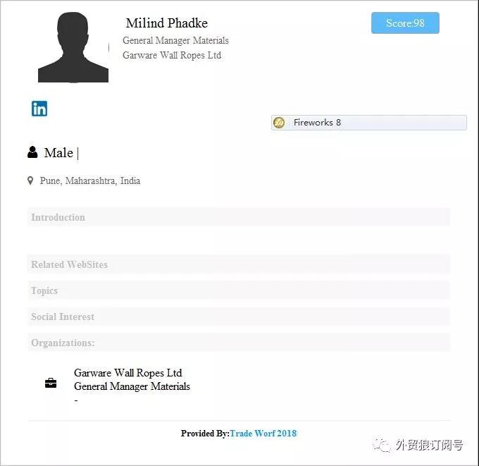 放大細節(jié),選擇了其中一家(garware wall ropes ltd )做分析,可以很清楚的看到,他采購過pp rope,但是沒有具體聯(lián)系方式,怎么辦?如下: